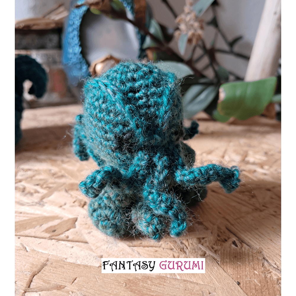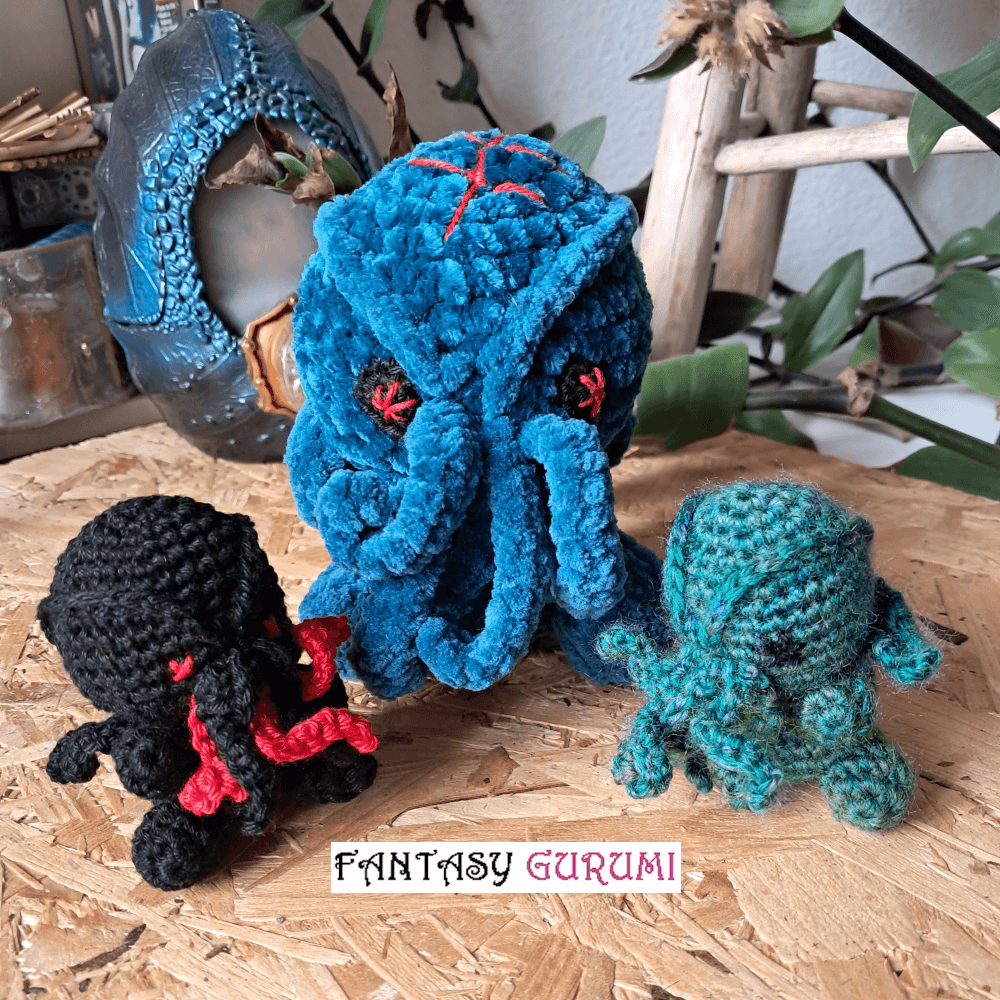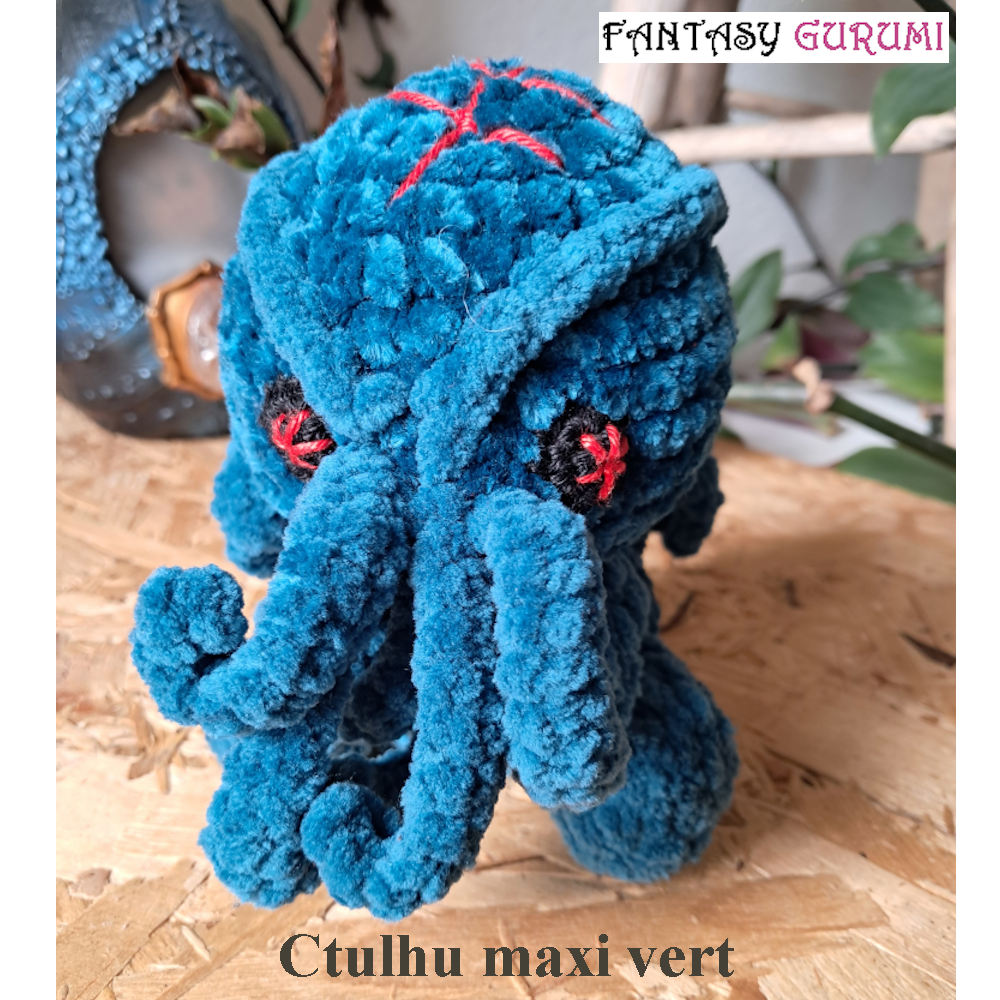 Préparez-vous à frissonner ! Émergeant des abysses, Cthulhu s’éveille enfin — furieux que l’humanité l’ait dérangé lors d’un forage en pleine nuit. Confectionnée au crochet avec passion, cette créature mythique vous entraînera dans ses mystères dès le premier regard — ou câlin.