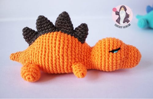 Toute réflexion faîte, mes dragons se sentaient bien seul à l’atelier, papa et maman avaient envie d’avoir de la compagnie. Force est de constaté qu’ils se sentaient bien seuls. Donc, j’ai décidé de les occuper à temps plein avec des bébé t-rex. Je leur ai crocheté des quadruplés. Entre nous on sait bien que les enfants c’est un boulot à plein temps.
